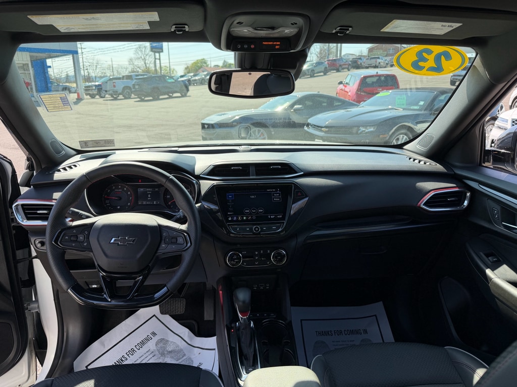 The leather seats in the vehicle are a must for buyers looking for comfort, durability, and style. Never get into a cold vehicle again with the remote start feature on this mid-size suv. Lane Keep Assist in this vehicle helps maintain safe driving by gently steering to stay within the lane. Bluetooth technology is built into this Chevrolet TrailBlazer, keeping your hands on the steering wheel and your focus on the road. Keep your hands warm all winter with a heated steering wheel in the vehicle . Protect this 2023 Chevrolet TrailBlazer from unwanted accidents with a cutting edge backup camera system. This mid-size suv offers Automatic Climate Control for personalized comfort. The vehicle's Lane Departure Warning helps keep you in your lane. Set the temperature exactly where you are most comfortable in this model. The fan speed and temperature will automatically adjust to maintain your preferred zone climate. The Chevrolet TrailBlazer is outfitted with an OnStar communication system.