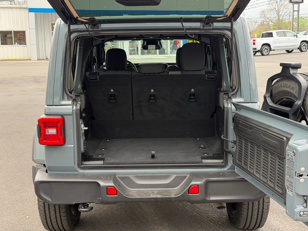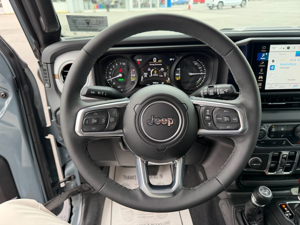 This Jeep Wrangler 4xe's Forward Collision Warning feature alerts drivers to potential front-end collisions. Bluetooth technology is built into it, keeping your hands on the steering wheel and your focus on the road. Keep your hands warm all winter with a heated steering wheel in this 1/2 ton suv . See what's behind you with the back up camera on the Jeep Wrangler 4xe. Apple CarPlay: Seamless smartphone integration for this 1/2 ton suv - stay connected and entertained on the go! This unit has auto-adjust speed for safe following. An off-road package is equipped on the Jeep Wrangler 4xe. This model offers Automatic Climate Control for personalized comfort. Start the vehicle from inside with remote start. This vehicle comes equipped with Android Auto for seamless smartphone integration on the road. When you encounter slick or muddy roads, you can engage the four wheel drive on this unit and drive with confidence.