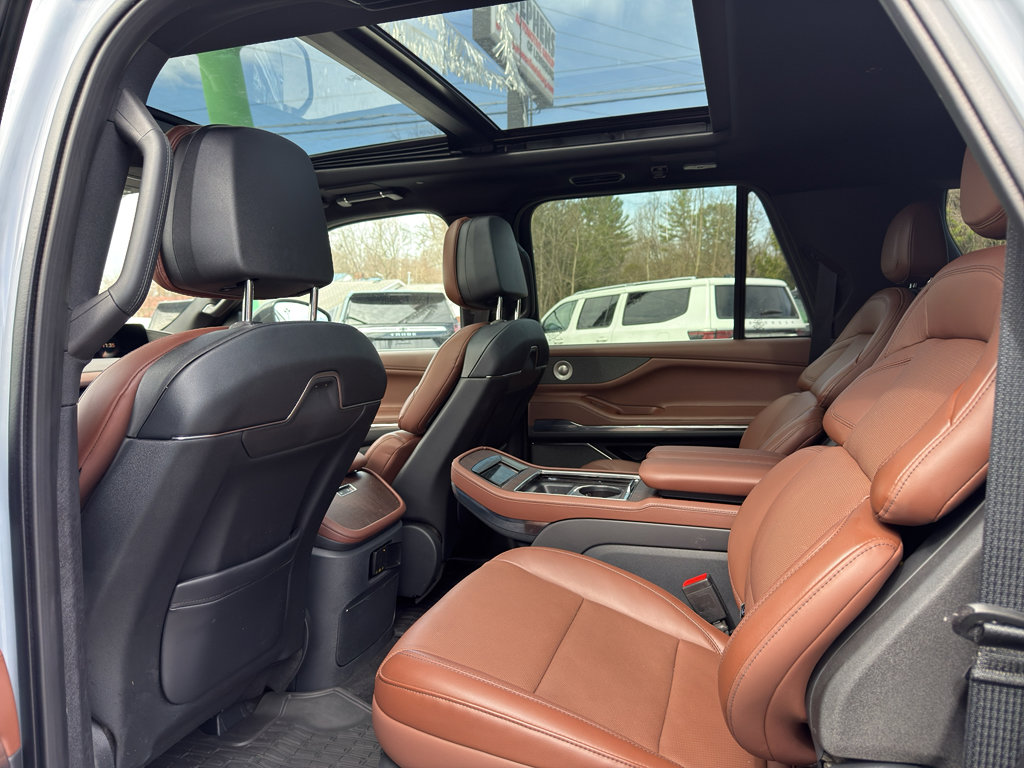 The leather seats in this unit are a must for buyers looking for comfort, durability, and style. Protect it from unwanted accidents with a cutting edge backup camera system. This model offers Apple CarPlay for seamless connectivity. Bluetooth technology is built into this model, keeping your hands on the steering wheel and your focus on the road. The installed navigation system will keep you on the right path. Keep your hands warm all winter with a heated steering wheel in it . Start this model from inside with remote start. This vehicle has auto-adjust speed for safe following. This unit offers Android Auto for seamless smartphone integration. Load groceries and much more with ease into the vehicle thanks to the power liftgate. This vehicle has four wheel drive capabilities. A trailer braking system is already installed on this Lincoln Navigator L. This 2025 Lincoln Navigator L has a V6, 3.5L high output engine.